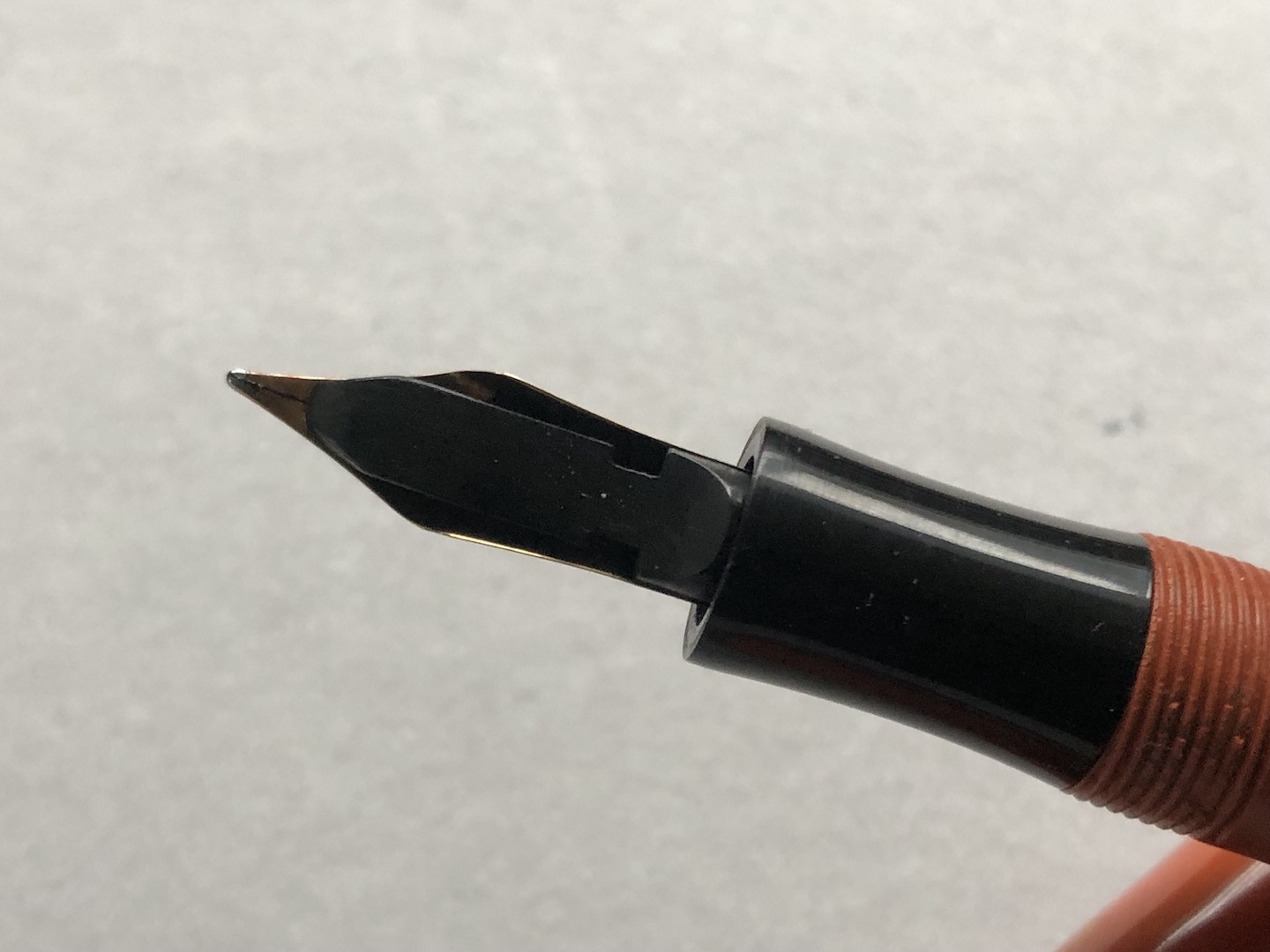 The push filler is operated by unscrewing the blind cap to leave a gap, introducing the nib to the ink bottle, and pushing a few times, once the ink is sucked in,  screw back the knob to the closed position, and it’s ready to write.