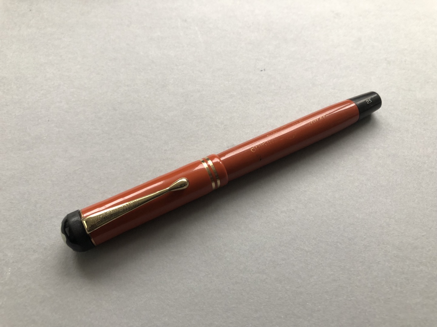 The Montblanc 25 push filler fountain pen was produced in Germany and is also under license in Denmark.